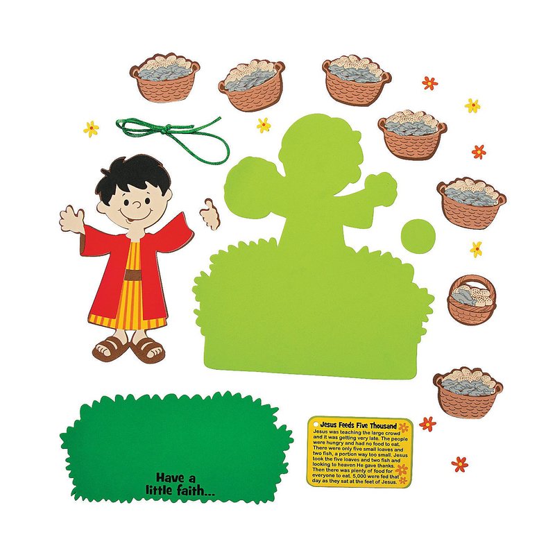 - Learn how Jesus feeds 5000! Includes self-adhesive foam pieces and a satin cord for hanging. Makes 12. 61/2 x 7 1/4"