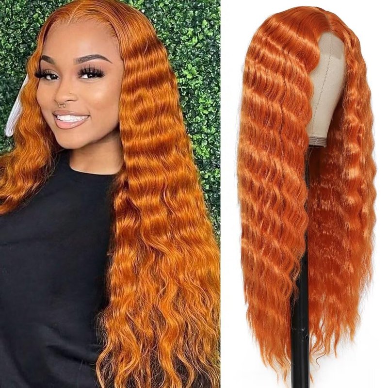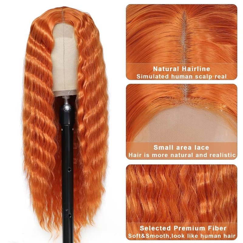- Deep Wave Synthetic Lace Wig: Length 28”(71cm). Ginger Color You Can Wear This Synthetic Lace Front Wig To Halloween,Cosplay Costume ,Party And Any Occasions, As Well As For Daily Use. Synthetic Curly Hair Wigs is Also A Good Gift For The Fashion Lady.