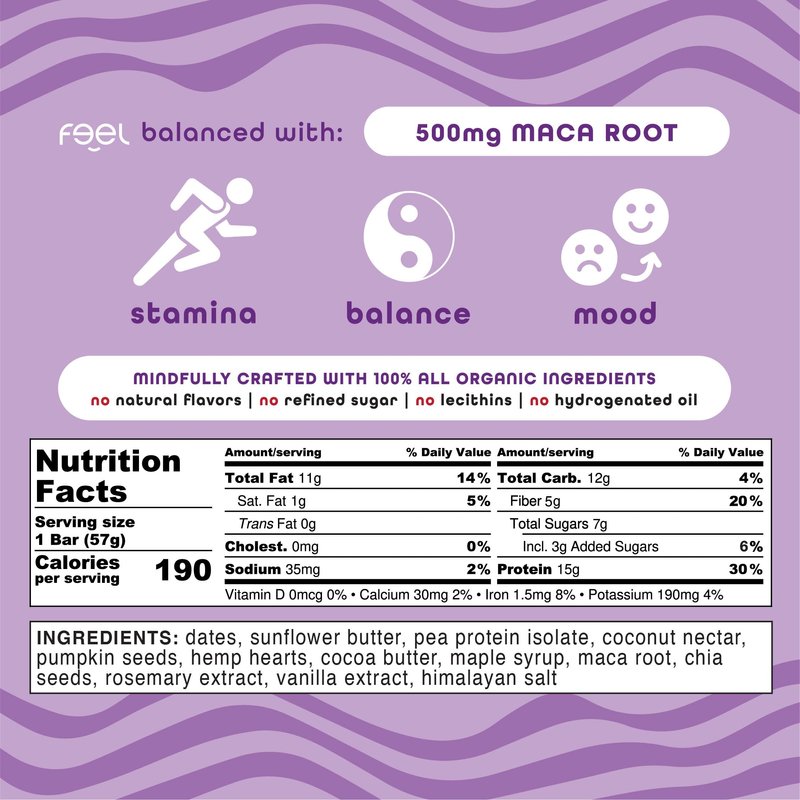 - FEEL THE DIFFERENCE: Restore balance to your adrenals and boost endurance with a functional dose of organic Maca Root (500mg/Bar).