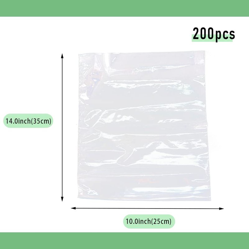 - Size and Quantity: 200PCS 10"(25cm) x 14"(35cm) food grade shrink wrap bags, the thickness is 100 Gauge (1 Mil).