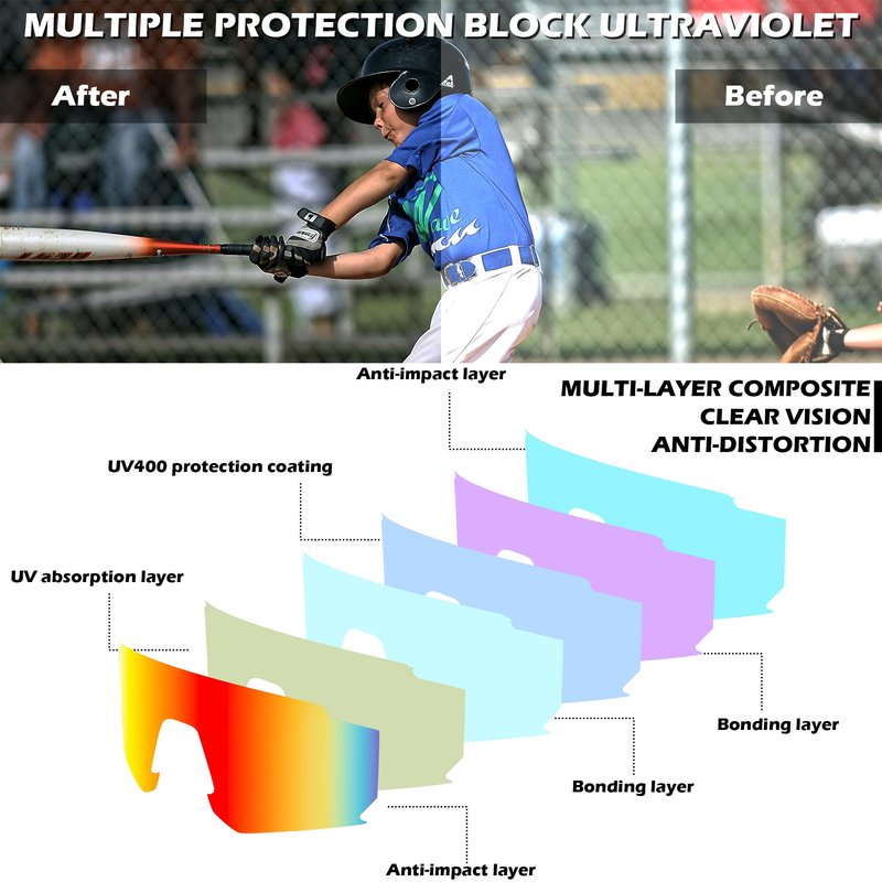 - [Fashionable & Practical Design] Rich colors of the lenses combine fashion with sports and are suitable for Youth Teens.Wrap-around shield glasses can better fit the eyes, not only bring a wider field of vision, but also cover the eyes to a greater extent, and more safely protect the eyes from dust, wind and other effects.