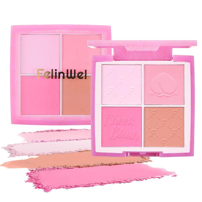 FelinWel Blush for Cheeks Matte Powder Blush Palette Long-lasting 4-color for Healthy Glow
