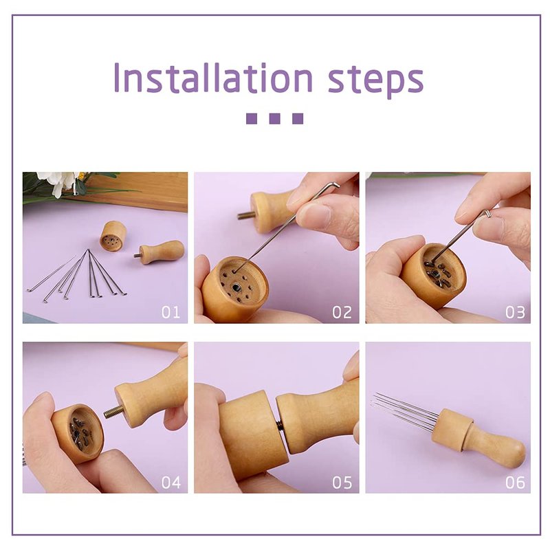 - Special Design:Free to replace all sizes of needles,installation and removal is very simple and convenient, 1 to 8 pins between any use,The kit including 8 felting needles and 1 wooden handle, The 8 needles are brilliant for increasing the speed but not losing the quality finish.