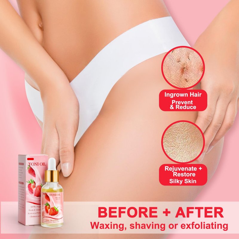 - 【All-in-One Organic Feminine Oil 】BASSI yoni oil is for your daily vaginal health and optimal hygiene needs. Our intimate oil formulated by our certified herbalist, this fusion of natural essential oils helps maintain Ph balance for women, soothes skin, ease discomfort, irritation and itchiness, keeps your skin moisturized, gently cleanses, stimulates and moisturizes the feminine area, leaving it supple and free of any odors. And keeps your V smelling like fresh strawberry fruits.