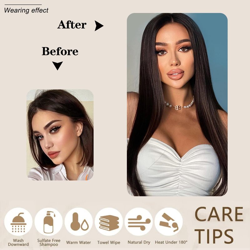 - ✅【Care Tips】Different from real human hair, synthetic hair maybe tangled without nutrients,By using hair care products to keep the texture of the hair extension smooth, brush the hair gently by wide tooth comb.When heat hair, recommended temperature below 200℃, maximum temperature don't exceed 250℃.