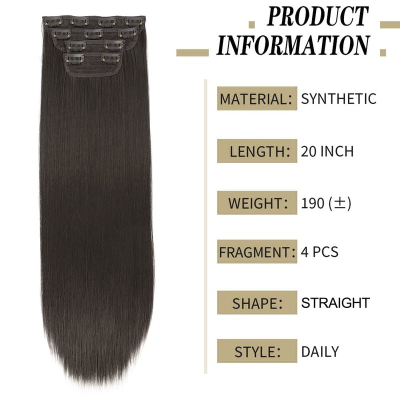 FENTISAR Clip in Hair Extensions 4PCS Clip in Long Straight Dark Brown Hair Extensions 20Inch Synthetic Fiber Double Weft Thick Hairpiecesn For Women Daily Wear