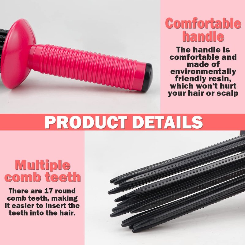 - Easy to use: This curling comb has 17 rounded teeth with small dots to increase friction, better fluffing of hair and massage of scalp. Small size, easy to use, can be placed in your bag anywhere.