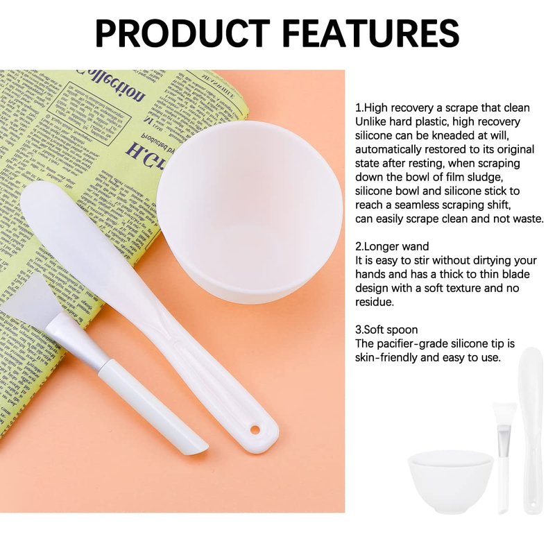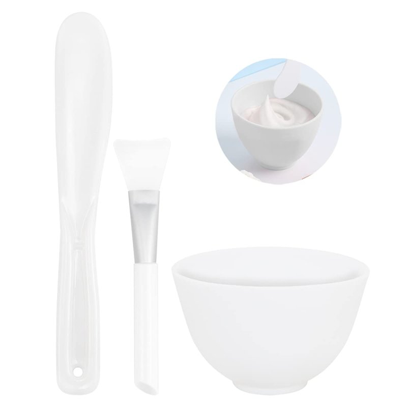 3Pcs Diy Face Mixing Bowl Facial Mud Bowl Silicone Facemask Bowl Cosmetic Beauty Tool, Microwavable Silicone - Professional Spa Facial Mask Mixing Bowl for Home Salon Spa Face Skin Applicator Bowl (White) Features 1. Made of silicone, soft and flexible. 2. This silicone bowl is resistant to high temperature, drop and not easily deformed. 3. Suitable for personal home use or professional beauty salon use. 4.Microwavable and dishwasher safe, Heat resistant up to 446°F/230°C Specification Color: White. Material: Silicone. Size: about 3.93*2.67 inches Package Including 1 x medium bowl 1 x stirring stick 1 x applicator stick In addition to mixing masks, it can also be used as a bowl for ingredients such as spices. Reasonable size, can hold a small amount of ingredients, such as salt, spices, honey, baking soda.