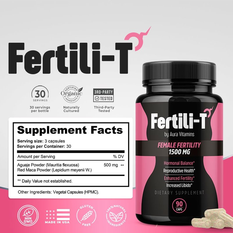 Fertili-t Female (90 Caps) Natural Fertility Support, Hormonal Balance & Prenatal Vitamins for Women, Conception Support, Natural Fertility Supplement with Aguaje & Red Maca (30-Day Supply) (1)