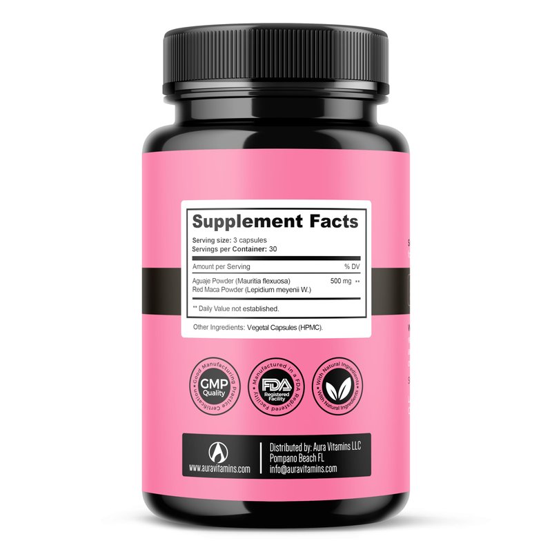 - Supports Hormonal Balance – Red Maca and Aguaje are traditionally known for their ability to naturally balance hormones, promoting menstrual cycle regularity, ovulation support, and overall reproductive wellness. This supplement helps maintain a stable hormonal environment essential for fertility.