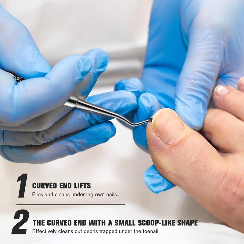 - 【Ingrown toenail lifter】 Lift ingrown part away from the skin. Not only a lifter, also an amazing nail cleaner. Double curved ends are mirrors for both left and right foot. With little spoons on it curved end’s that make it gets under even the closest toe nail to grab even the smallest bits of debris