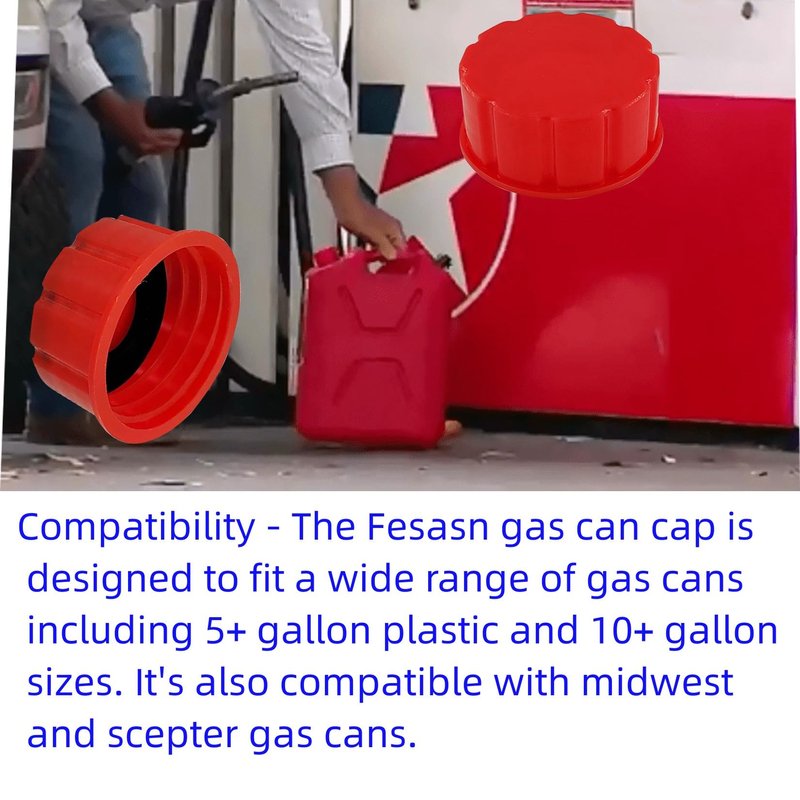 Fesasn Gas can cap,Includes 5 coarse threaded gas can caps, solid bottom cap, Gas can cap gasket, Using high quality materials, Wider and thicker gas can cap seal, better fit the cap, gas can cap no spill, can effectively prevent the liquid from overflowing in the process of transportation.superb compatibility, Whether you're using a 5 gallon gas can, Blitz Can, Diesel 5+ Gallon, Gas Gallon, or any other compatible can, our gas can cap replacement coarse is designed to fit them all. including popular brands like Blitz Can, Diesel 5+ Gallon, Gas Gallon, and more. Simply remove your old gas can cap and replace it with our Fesasn Gas Can Cap Replacement Coarse for a secure and reliable seal. No more worries about leaks or spills during transportation or storage. Our gas can cap replacement coarse features a leak-proof design, providing you with peace of mind knowing that your fuel will stay safely contained. Whether you're refilling your lawnmower, generator, or any other equipment, our gas can cap replacement coarse will ensure a hassle-free experience. It can be used with gas cans, gasoline spout caps, gas vent caps, gas vented gallon cans, gas spouts tank caps, and more. Its compatibility and functionality make it a must-have accessory for any gas can owner. Upgrade your gas can experience with the Fesasn Gas Can Cap Replacement Coarse. Trust in its premium quality, universal fit, leak-proof design, and versatility.Say goodbye to leaks and spills and enjoy a seamless and reliable fueling experience.