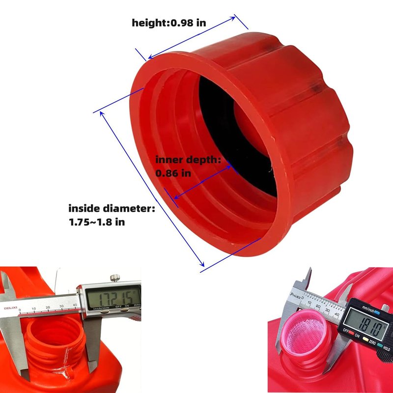 - The gas can mouth size that can be installed is 1.75in to 1.81in. Please measure the size of your gas can spout before purchasing. New upgraded lid, lowered height. Make sure the gas tank lid can be completely seale