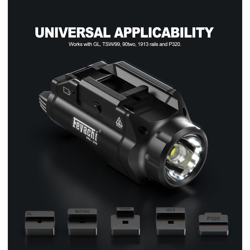 - 【Universal Compatibility】Pistol flashlight package is compatible with most universal rail-equipped handguns. Comes with 5 different Locating Keys, GL, TSW/99, 90two, P320 and 1913 etc, which can be easily attached to a variety of different pistols/rifles.