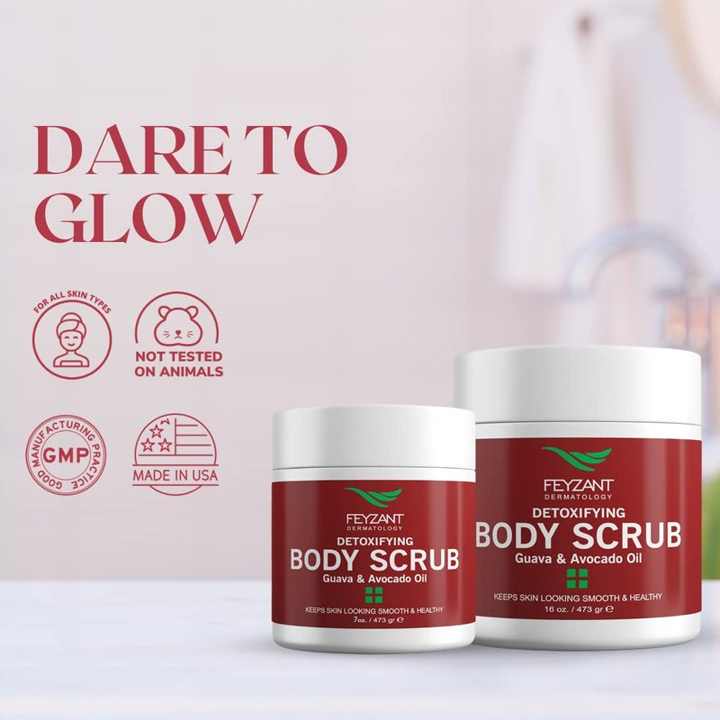- High-Quality Formula for Radiant Skin - Feyzant Skincare's Body Scrub is made with Guava and Avocado Oil, known for their extraordinary moisturizing properties, effectively enhancing a youthful appearance.