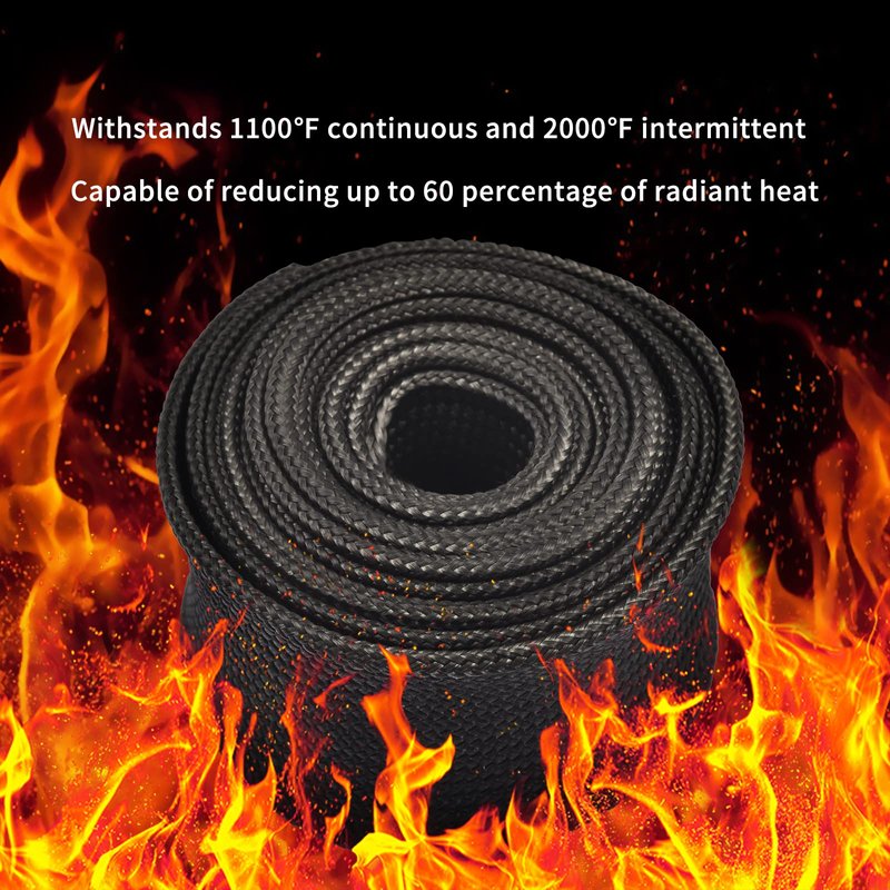 - 【Function】Heat Sleeve Fiberglass is mainly made of high-temperature fiber glass. It's can withstand 1100°F continuous and 2000°F intermittent, Reduces radiant heat by up to 60%, Helps to prevent vapor lock, protects wires from melting. Size: 5FT x 26MM(1 Inch)