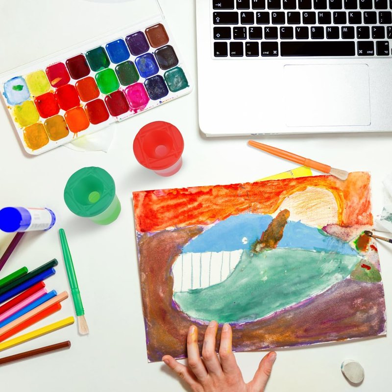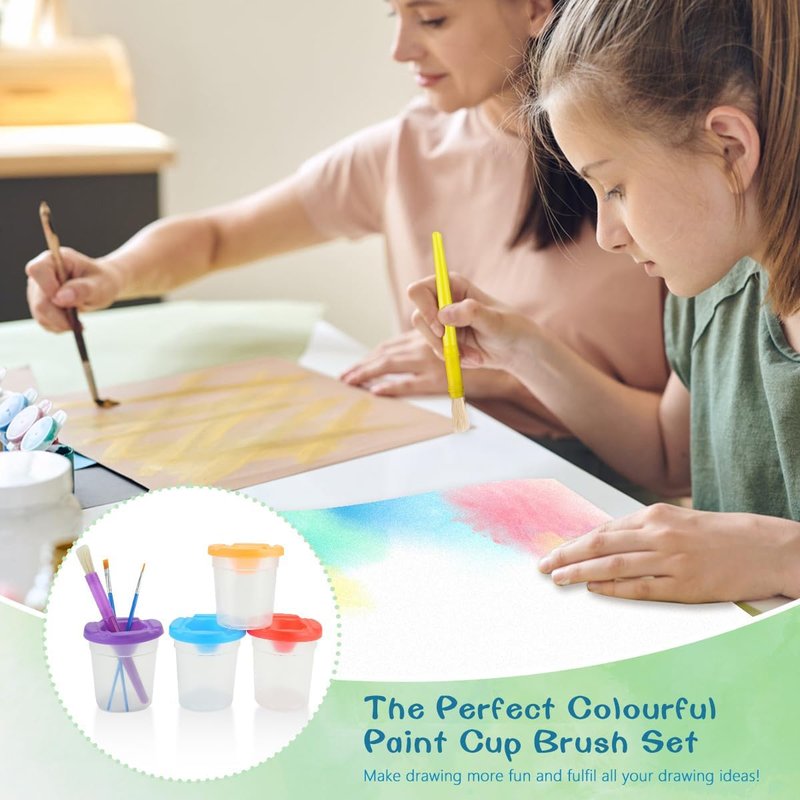 This multi-color kids spill proof paint cups and Brushes set is a sweet gift for preschoolers, the variety of colors is easy to grab a child's attention and kids can try different paint cups and brushes to help them enjoy their painting lessons.