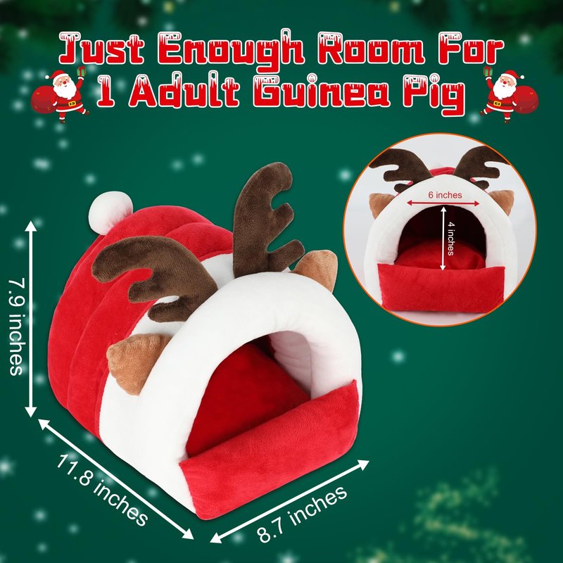 FHTONGE Guinea Pig Bed Cave for Winter, Christmas Guinea Pig Hideout House Rreindeer Shap, Warm Rat Hideaway Cozy Chinchilla Bed for Dwarf Rabbit Ferret Hedgehog Hamster Small Animal Hide