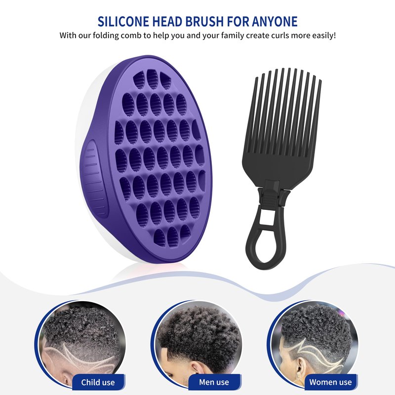 FIABC Silicone Curl Brush,Africa Comb,Magic Curly Hair Brush Twist Hair,Afro Pick,Men Women Boys Girls Wave Curler Tool,1 Set (Purple)…