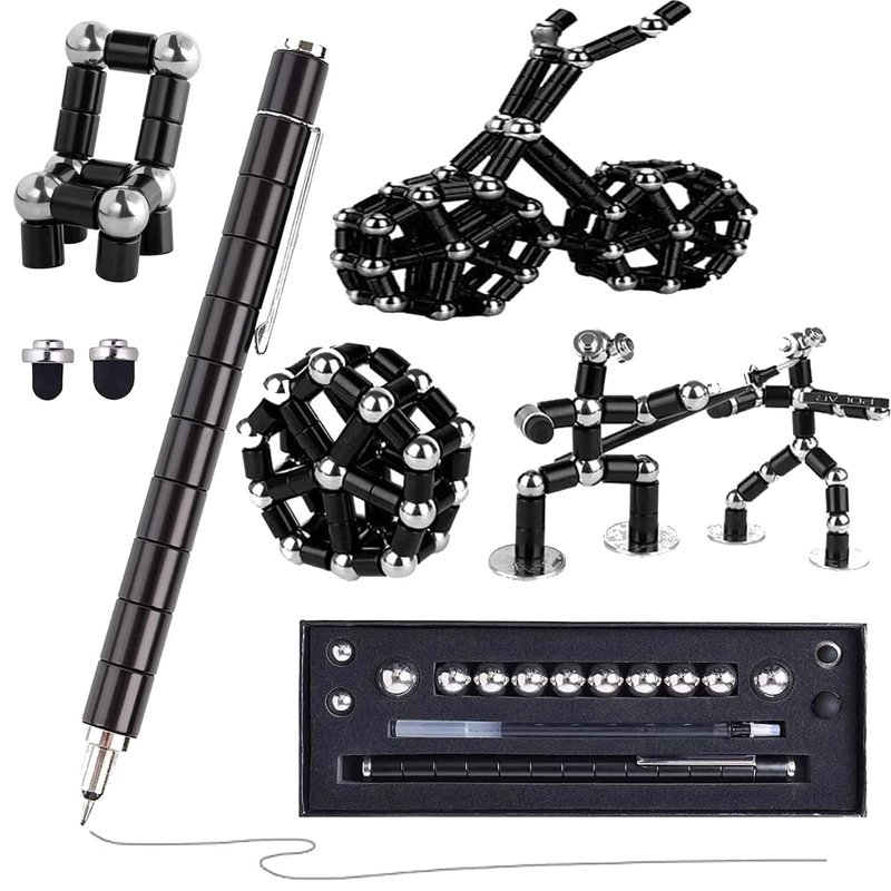 iSkelter Fidget Pen, Decompression Magnetic Fidget Toy Pen for Kids Adults, Metal Magnet Pen Fidget Toy Multifunctional Deformable Relieve Pressure Magnet Writing Pen Desk Toys Gift, Decompression Magnetic Metal Pen, Multifunction Writing Magnet Ballpoint Pen, Pressure Fidget Cool Gadgets, Gifts for Kids, Teenage, Boy, Girls or Friends ,Toy Pen Relieving Stress Build Various of Shapes, Strato Pen Polar Pen for Christmas Gift