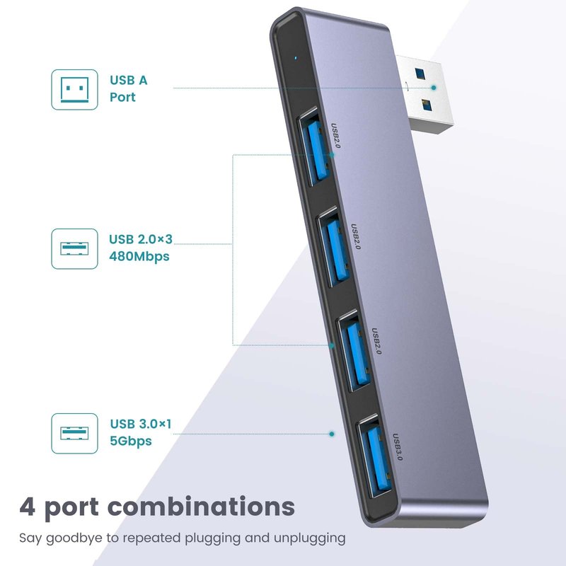 - The USB Hub tansfer a single USB port into 4 USB data ports. you can get 1 USB 3.0 and 3 USB2.0 ports with your laptop. No software, drivers or complicated installation process requirement.