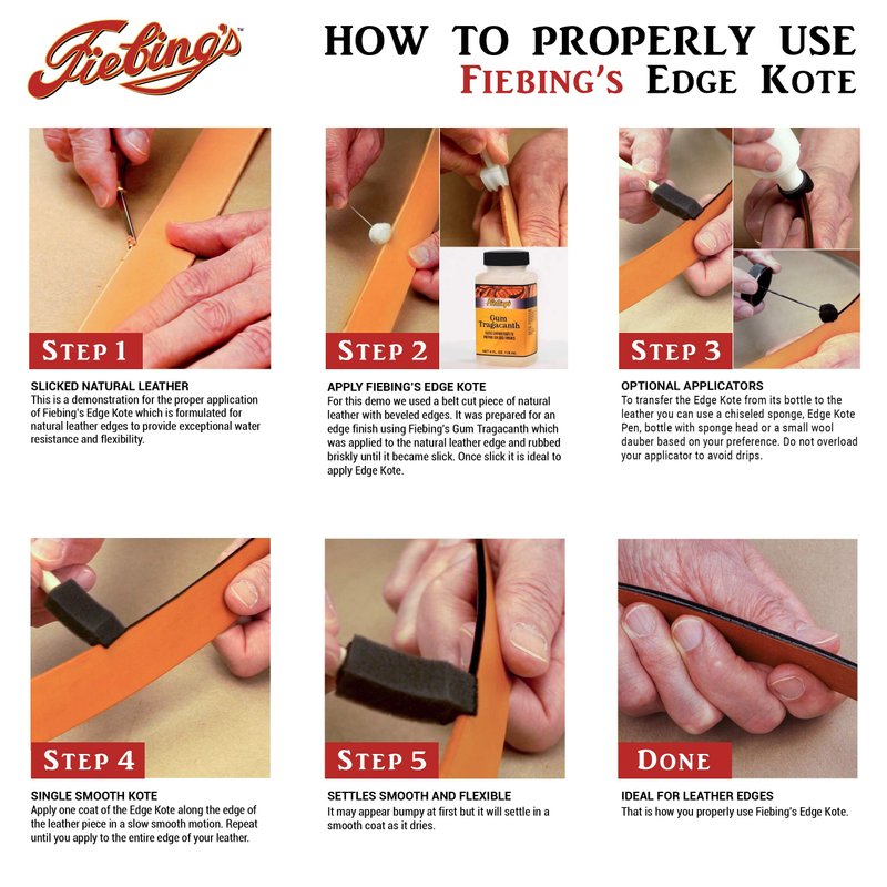 - PROFESSIONAL FINISH: Achieve a clean and polished appearance for leather edges with Fiebing’s Edge Kote Leather Paint.