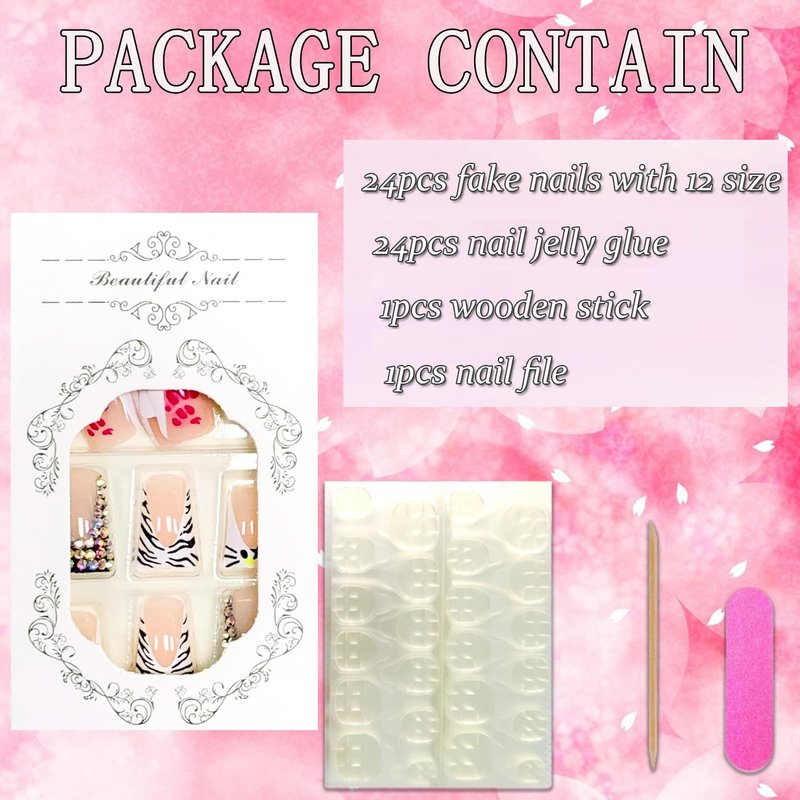- 【False Nails Sets】You'll get 24 duck shape false nails in 12 sizes. 1 mini nail file, 1 small wooden stick, 1 piece of press on nails adhesive sticky tabs.