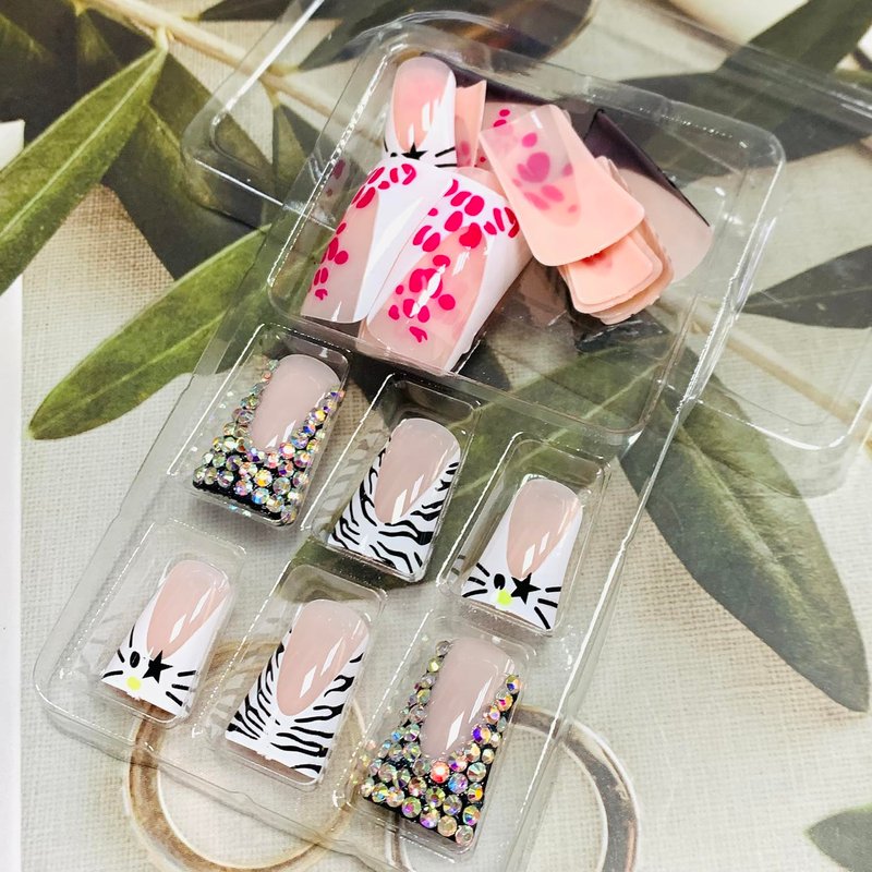 - 【Reused】If you use jelly adhesive nails tabs to fix false nails, it can be easily removed without affecting the nails for repeated use, but the nail glue sticker is not as good as liquid glue, if you want to keep it for a longer time, you need to use liquid glue(Cannot be reused).