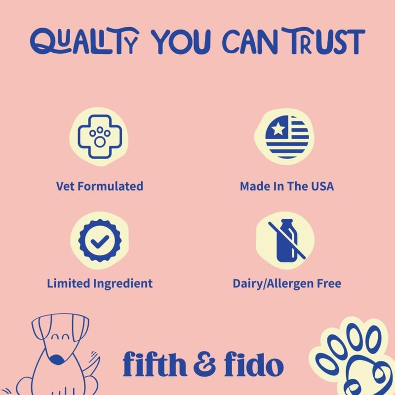 - Clean, USA-Made, Dog-Approved – Crafted in a GMP-certified facility with nothing fake or filler. Fifth & Fido's dog food toppers for dry food are so delicious, your pup thinks it’s a treat, not a supplement.
