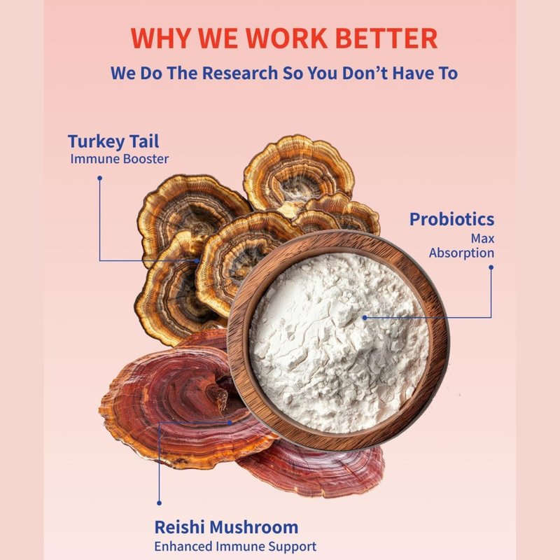 - 3-in-1 Wellness Dog Vitamins - You Won’t Find Elsewhere – Not just Turkey Tail. We added Reishi mushroom for vitality and probiotics for gut health—because a strong immune system starts in the gut. Competitors stop at mushrooms. We go further.