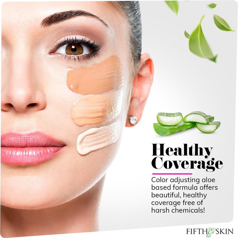 Color adjusting, All Natural, 90% Organic, Aloe based formula offers beautiful, healthy coverage free of harsh chemicals! If you choose a color that is slightly off by a shade or two, it will adjust to your skin tone. Has a very light vanilla scent (from real vanilla!).