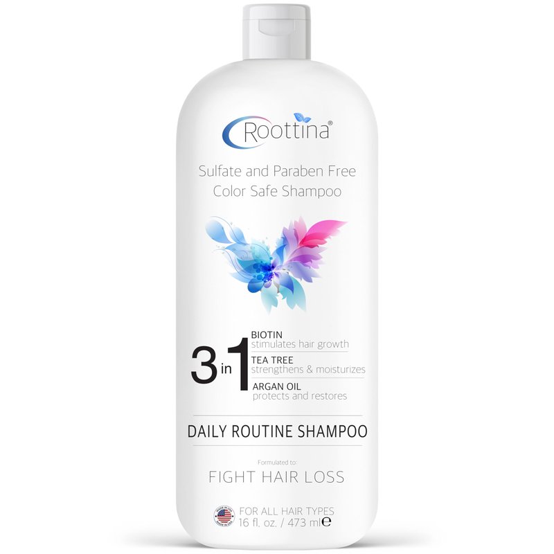 - ADVANCED HAIR LOSS SUPPORT -- Roottina Daily Routine Shampoo incorporates cutting-edge DHT blockers to effectively combat hair loss. Enriched with Biotin, Tea Tree, Argan Oil, and other essential oils.