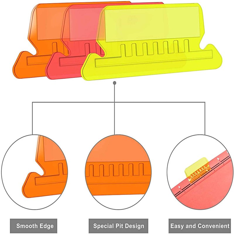 - [Easy Viewing] - Each clear folder tab is 2" wide, so that you can easily insert the paper into the file folder slots and read the label. 6 colors include red, orange, yellow, green, blue and transparent