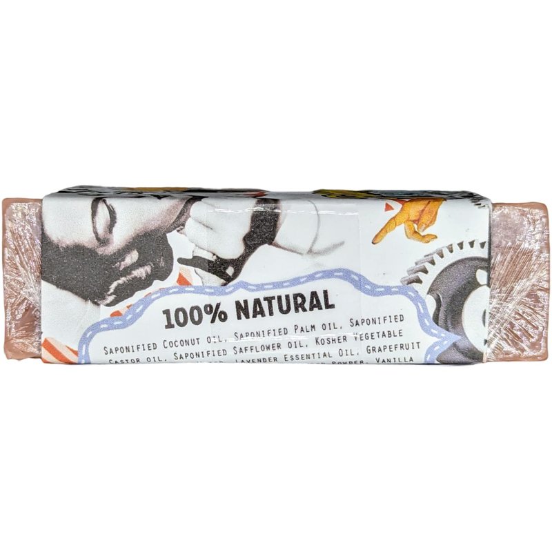 Hand-cut to well over 5Oz. Each. No Yucky Stuff! Our Soap recipes are 100% Natural and Vegan Friendly! Saponified Vegetable Oils (Coconut, Castor and Safflower) Kosher Veggie Glycerin. Highest quality essential oils herbs and spices. (Organic when available) 100% Natural Ingredients: Saponified Coconut oil, Saponified Palm oil, Saponified Castor oil, Saponified Safflower oil, Kosher Vegetable Glycerin, Purified Water, Lavender Essential Oil, Grapefruit Essential Oil, Vanilla Powder, Sandalwood Powder, Vanilla Absolute, Paprika, Sorbital, Sorbitan oleate, Soy protein. Not tested on animals. Contains no animal products, detergents or yucky stuff!