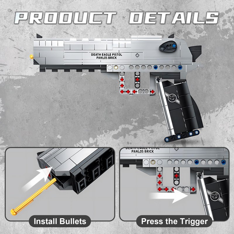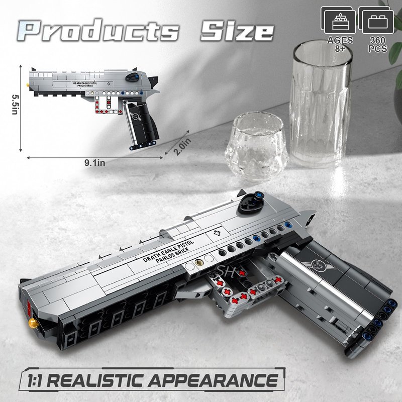 Finger Rock Gun Building Sets for Adults, 1:1 Simulation Shooting Toy Desert Eagle Pistol Model Building Blocks Kit, Rifle Weapon Collectible Gift for Military Enthusiasts, Kids Boys 14+ (360 pcs)