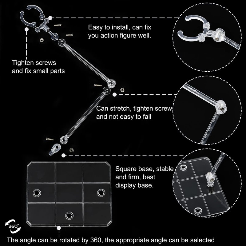 - 【Easy To Assemble】: The item is shipped non-assembled. Easy assembly required.Please refer video to detailed installation introduction.The action figure stands can match any style of doll very well, it's lightweight and portable that you can move it easily.