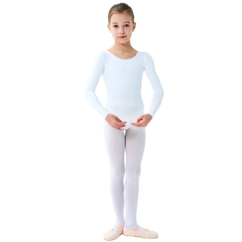 Finihen Girls Leotard Basic Long Sleeve Ballet Dance Leotard White 2-4yrs
