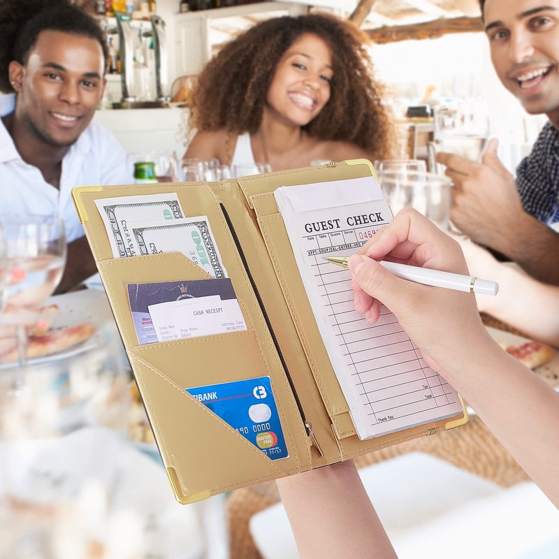 - 【High Quality Material】The cute server book is made of premium high quality PU leather, soft in hands. Exquisite workmanship, uniform and beautiful seam, sturdy and durable. The metal edge protectors give the waiter wallet a premium look besides the fact that it will last longer.