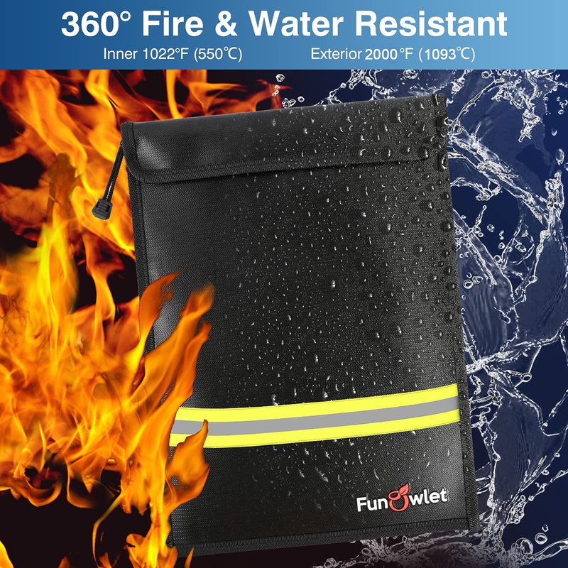 - FIRE & WATER RESISTANT: Fireproof document pouches are made of high quality non-itchy silicone coated fiberglass which stands up the temperature up to 2000℉. It will protect your documents and valuables from the damage in case of fire. Fireproof bag for money is not only fire resistant but also high water resistant in case it gets wet for any reason.