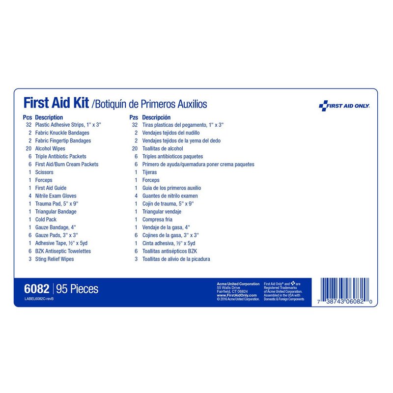 First Aid Only 6082 25-Person Emergency First Aid Kit for Office, Home, and Construction, 95 Pieces White