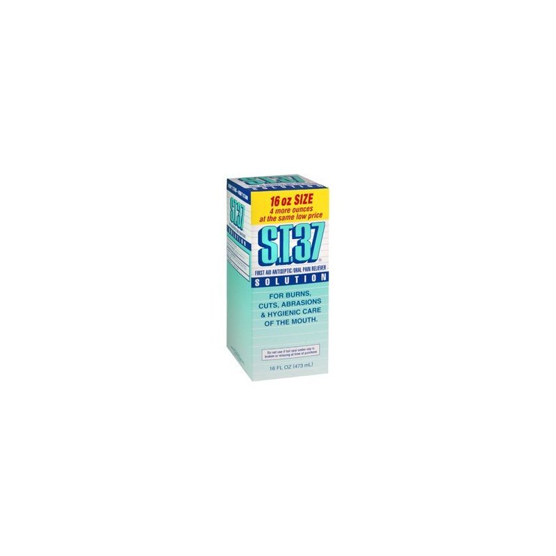 S.T.37 topical antiseptic oral pain reliever solution. For external use as a soothing antiseptic solution on minor cuts, abrasions, and burns. For temporary relief of occasional.