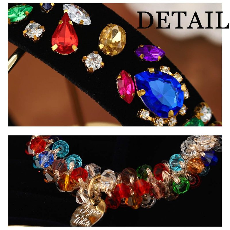- Black headbands made of high quality colored and different shapes rhinestones,black velvet and sparkle beaded,lightweight and comfortable to wear.