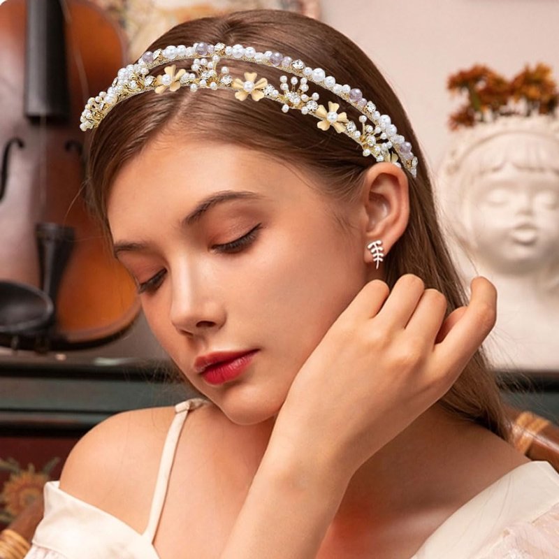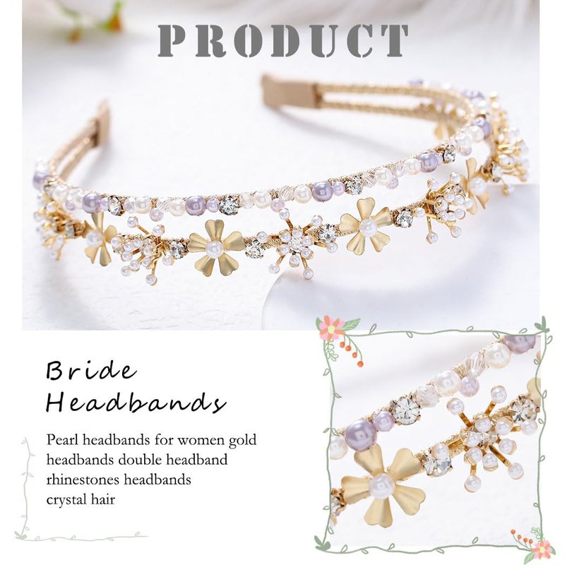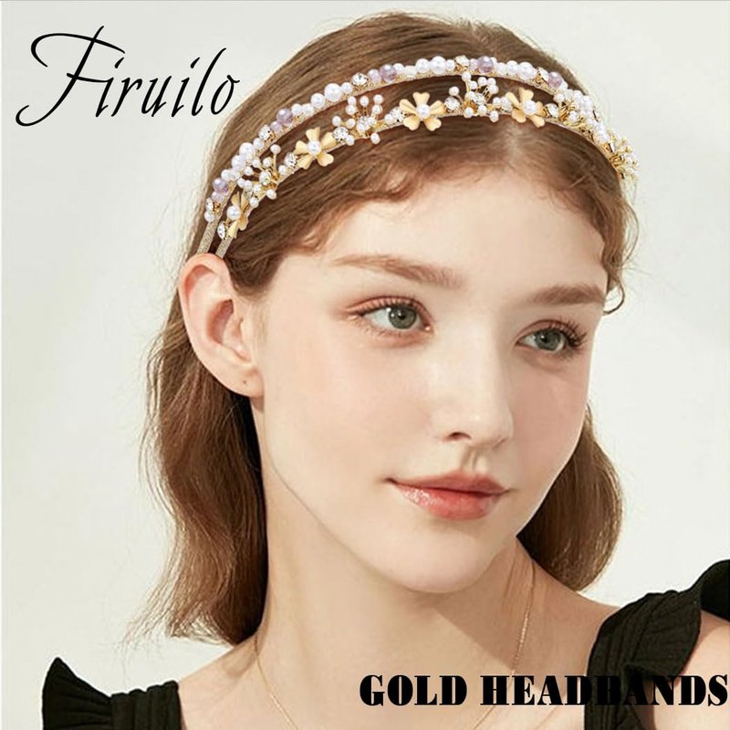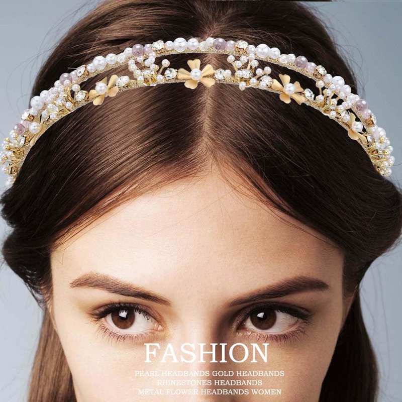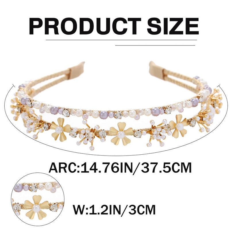 - Double gold headbands made of metal ,pearls, rhinestones and beaded, not entangle hair and comfortable to wear.