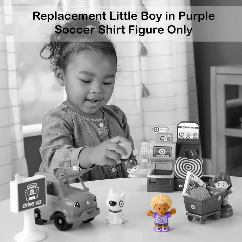 What’s included? Replacement Little Boy in Purple Soccer Shirt Figure. This replacement Little Boy Figure works with the Fisher-Price Little People Target Run Playset HXX97.