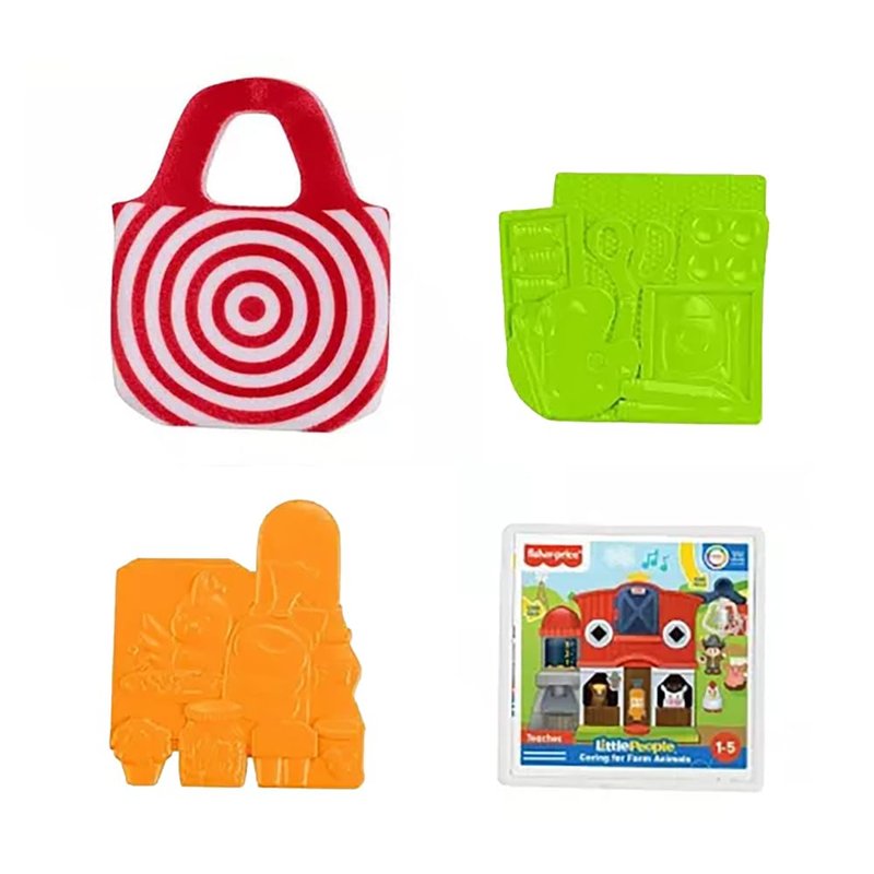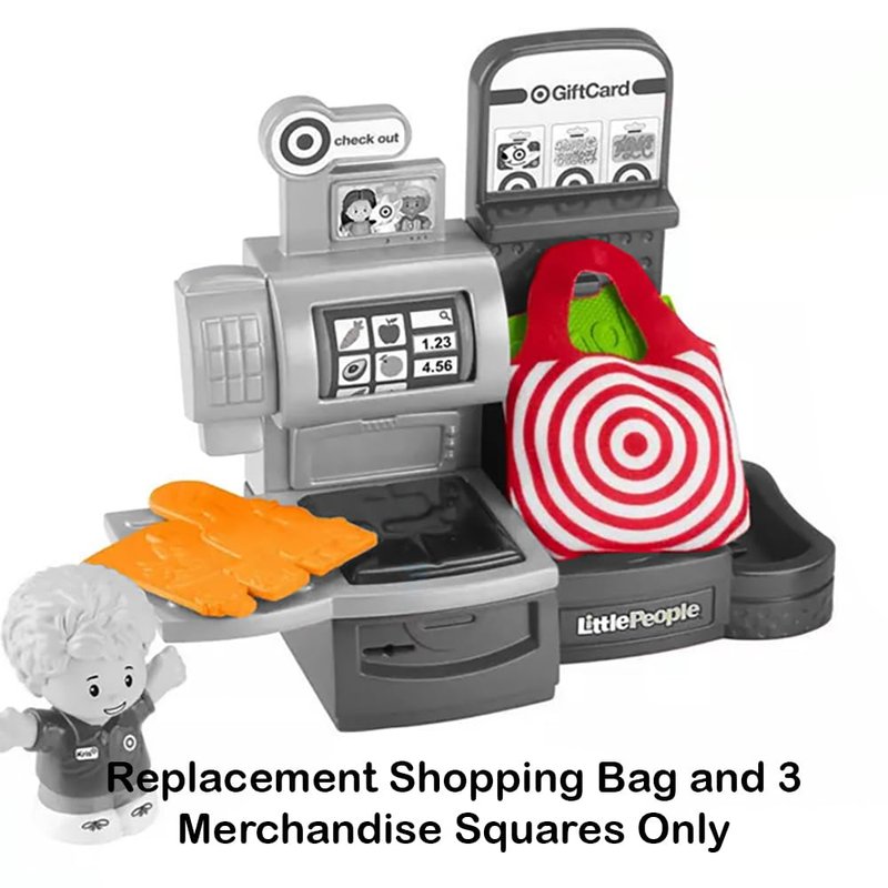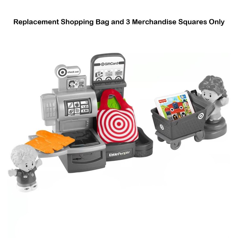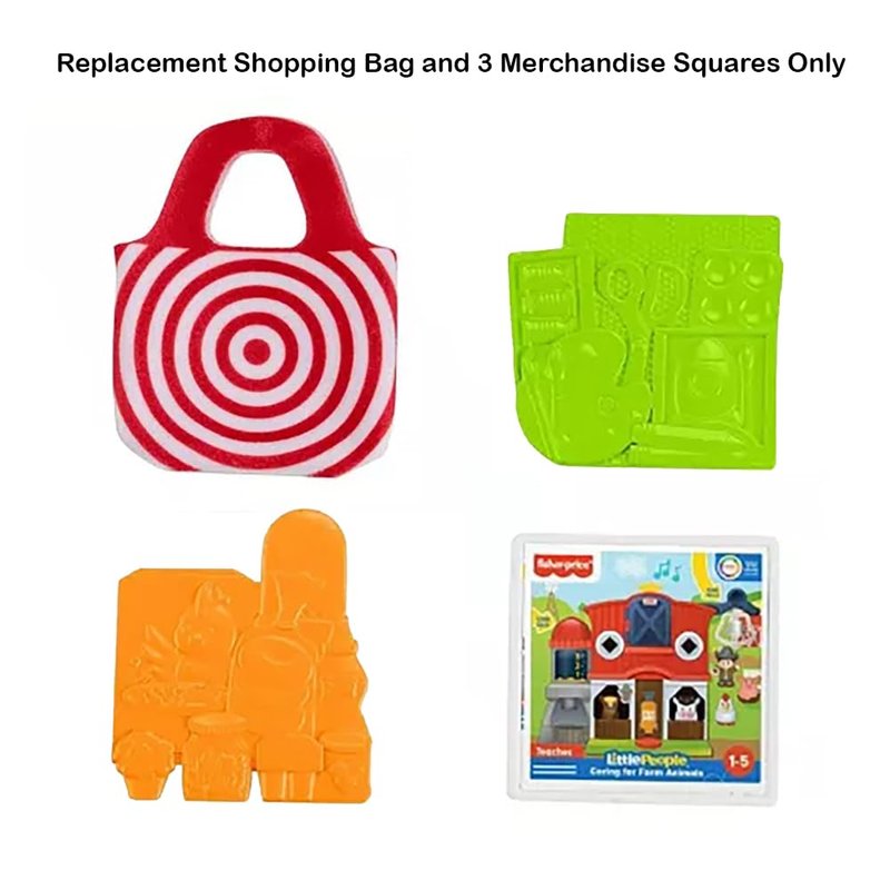 What’s included? Replacement Shopping Bag and 3 Merchandise Squares. These replacement Shopping Bag and Merchandise Squares works with the Fisher-Price Little People Target Run Playset HXX97.