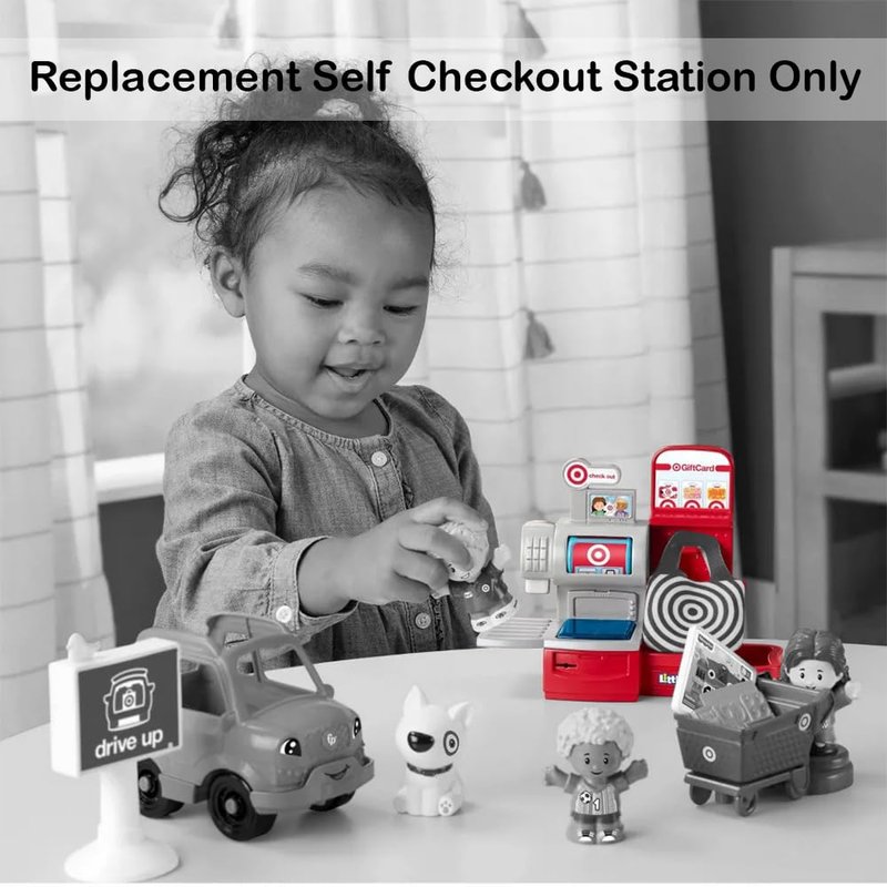 What’s included? Replacement Self-Checkout Station. This replacement Self-Checkout Station works with the Fisher-Price Little People Target Run Playset HXX97.