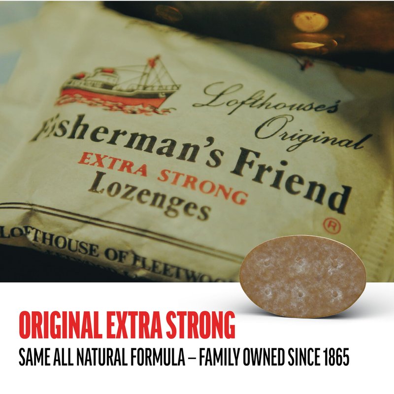 - LEGENDARY STRENGTH SINCE 1865 - Fisherman's Friend Original Extra Strong throat lozenges have used the same all natural, strong and effective formula since 1865. Our medicated lozenges have been tried and trusted for generations