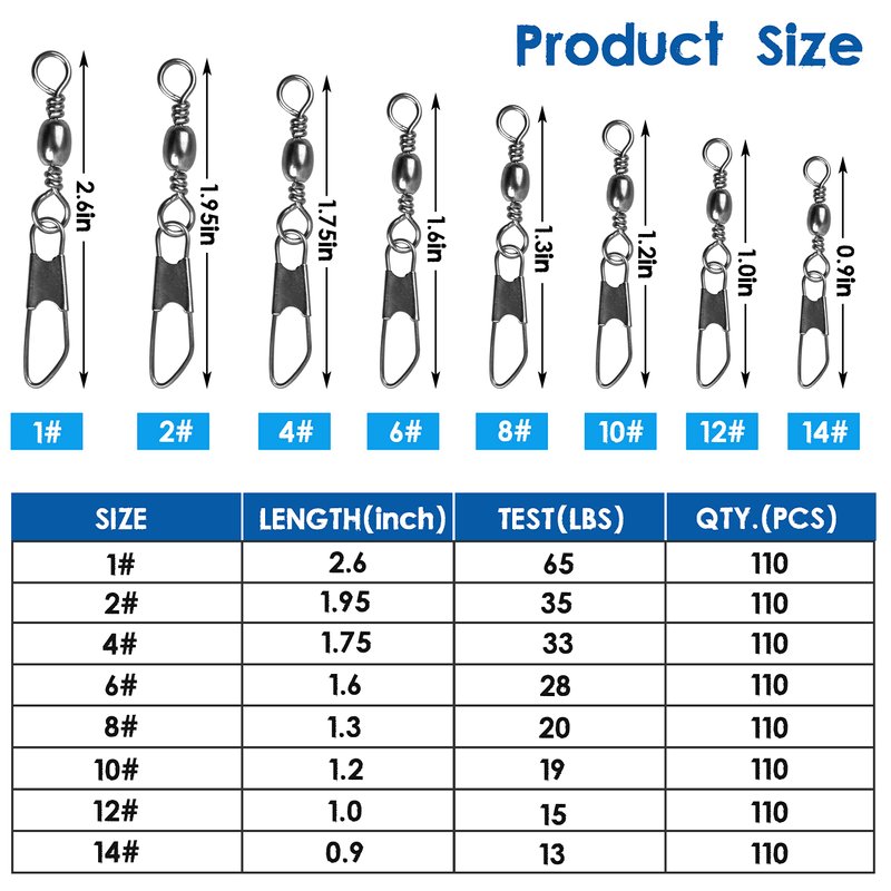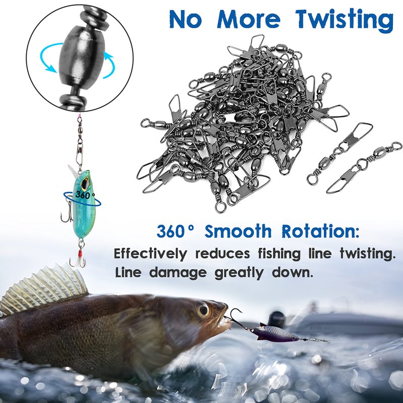 - 【SMOOTH】360°high speed rotation fishing snap swivels, rotate smoothly with the smallest water resistance.