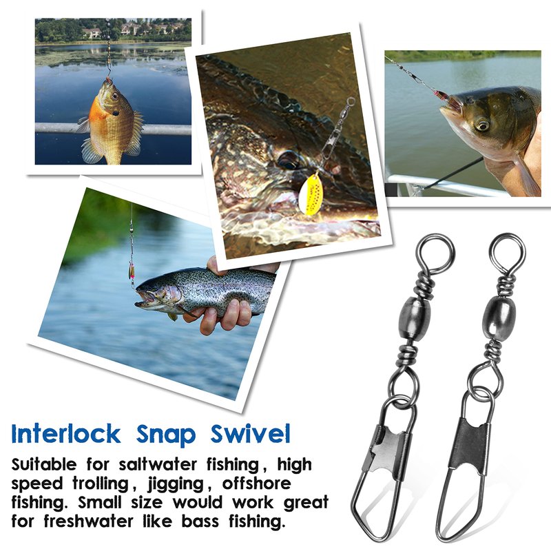 - 【SAFETY SNAP】Fishing Barrel Swivel Snap is simple designed for easy operation, very light with strong pull.