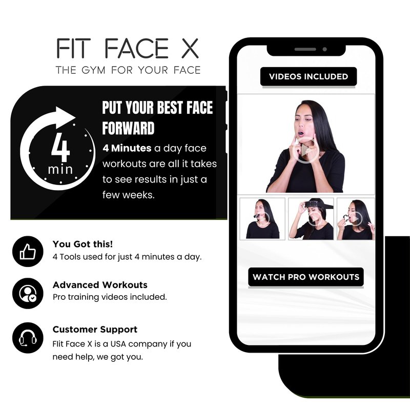 - FIT FACE X // COMPLETE FACE GYM // 4 Face Sculpting Tools In The Box/ Now Anbody can Workout Their Facial Muscles With Face Workouts That Are Just Four Minutes A Day / Real Workout Results for Lower Face, Double Chin & Neck Tightening, Jawline Shaper, Lip Plumper & Jowl Tightening.